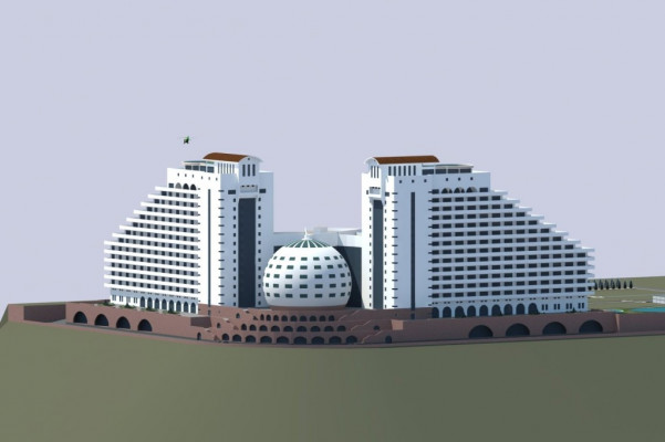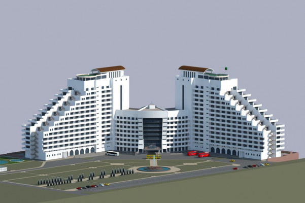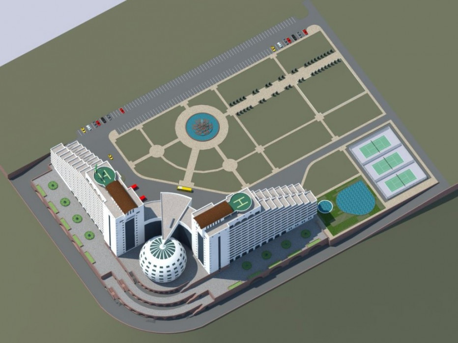 На участке расположен главный корпус многофункционального комплекса, который включает в себя :