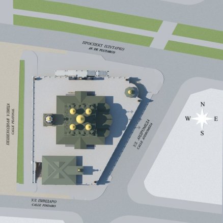 Основным ядром и главным акцентом объёмно-пространственного решения является русский православный Храм.