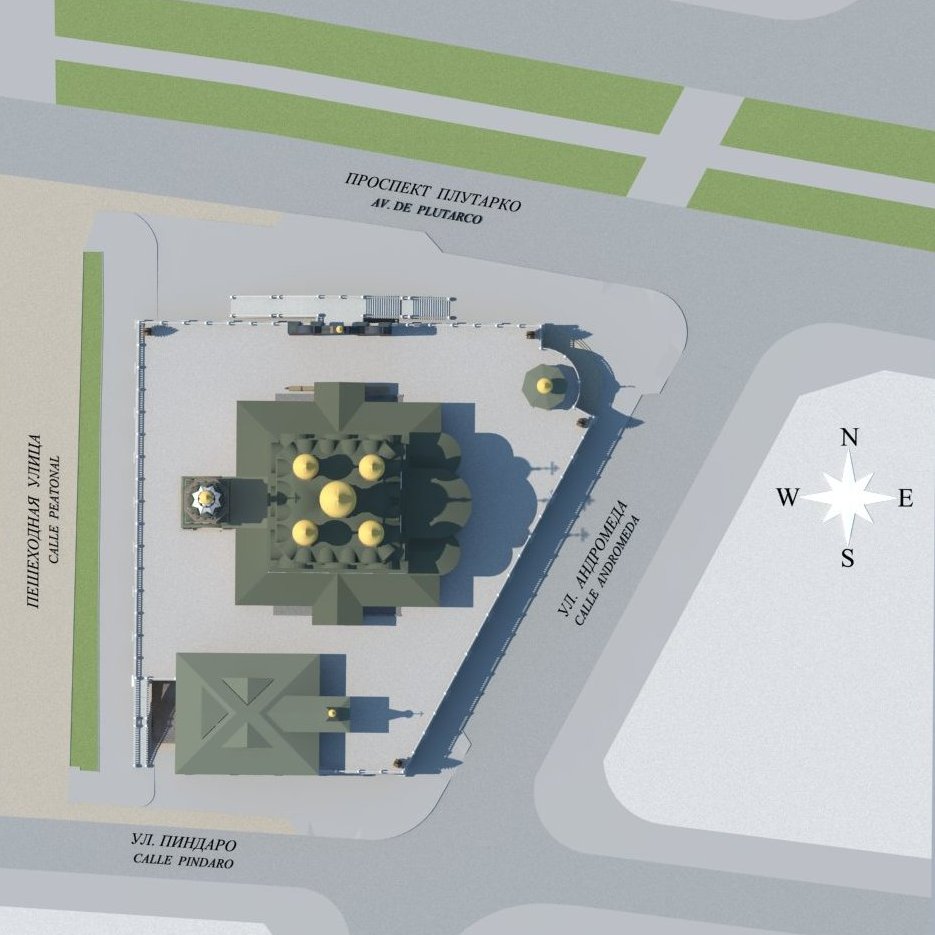 Участок под проектирование Русского православного просветительского центра расположен в г. Малага (Испания) в квартале ограниченном пересечениями улиц Пиндаро, Андромеды, проспекта Плутарко и пешеходной улицей.