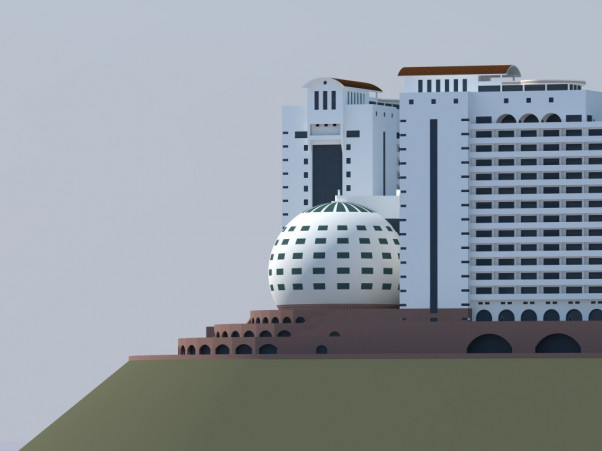 На участке расположен главный корпус многофункционального комплекса, который включает в себя :