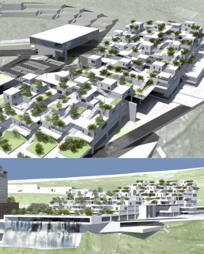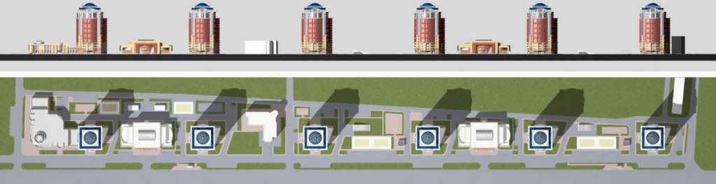 Существующие строения (ветхий жилой фонд) подлежат сносу. Фронт застройки проспекта Гагарина на данном участке будет представлять собой чередование высоких жилых домов с общественными зданиями, что создаст яркие акценты на фоне окружающей невыразительной застройки. В инфраструктуру комплекса входят подземные автостоянки, офисы, торгово-развлекательные и спортивные сооружения. Предлагаемое архитектурно-градостроительное решение позволяет создать около 49 000 м2 современного комфортабельного жилья.